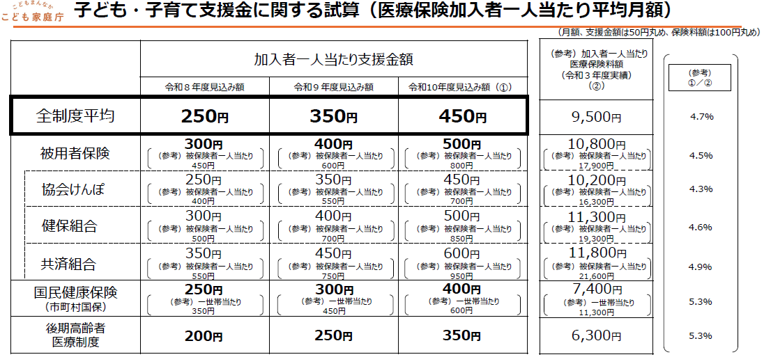 4月(給与からの控除は5月)からの、子ども・子育て支援金